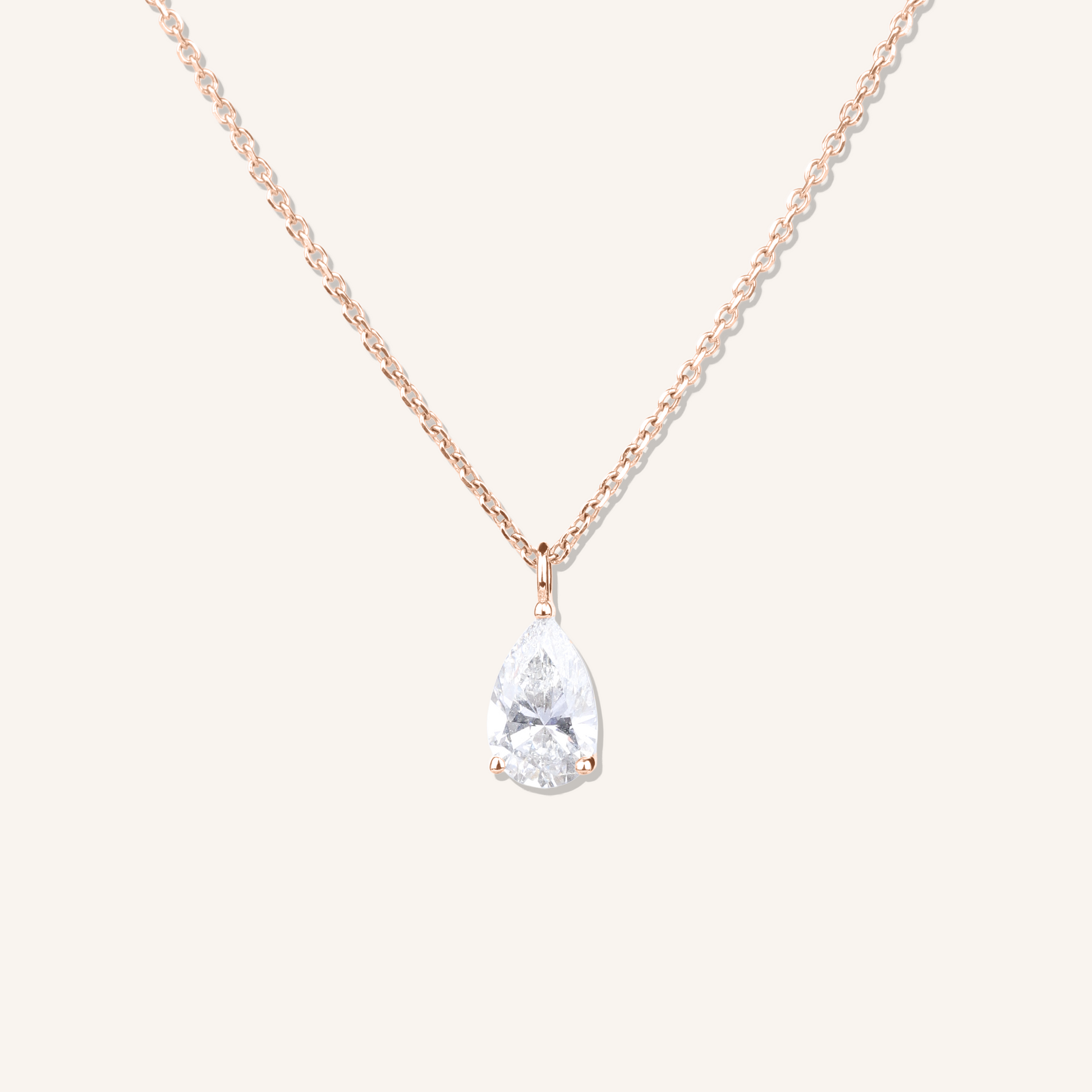 A refined solitaire necklace featuring a pear-cut lab grown diamond, set to highlight its natural brilliance and elegant silhouette.
