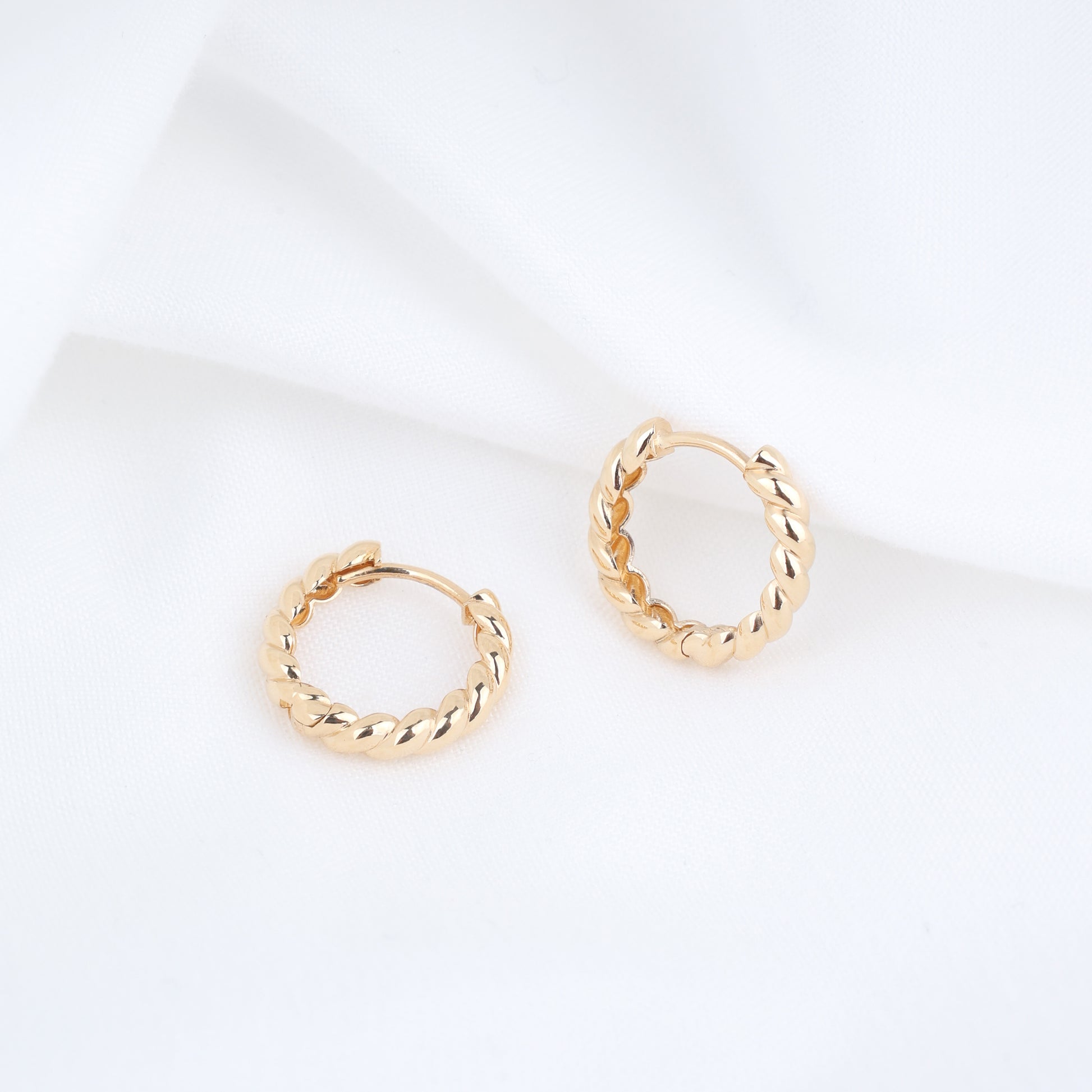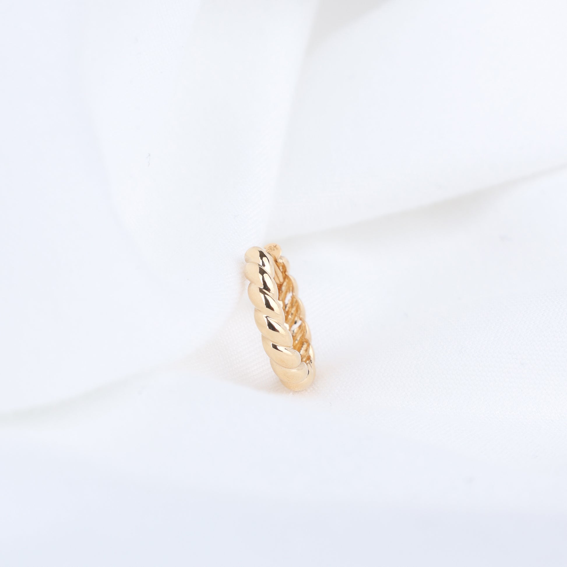 Inspired by the soft, rounded curves of a brioche braid, these hoops feature a gently twisted silhouette that flows seamlessly around the ear. Each ridge is sculpted to catch the light from different angles, creating a warm, dimensional shine that feels both modern and timeless.