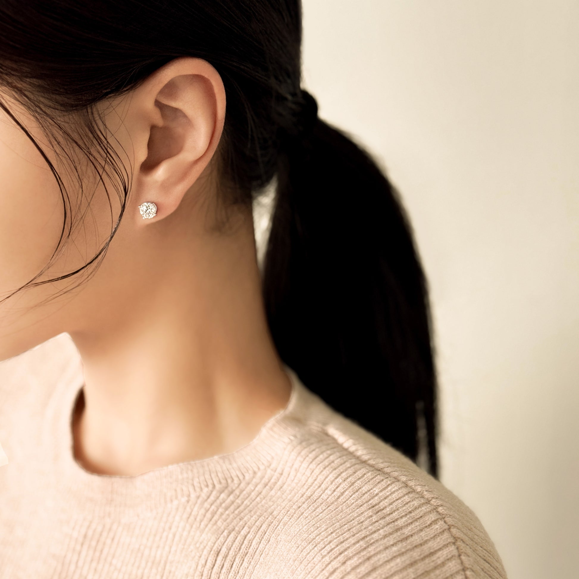 Each stud features a lab-grown diamond, securely held in a refined four-prong basket that allows light to enter beautifully from every angle, enhancing its natural sparkle.