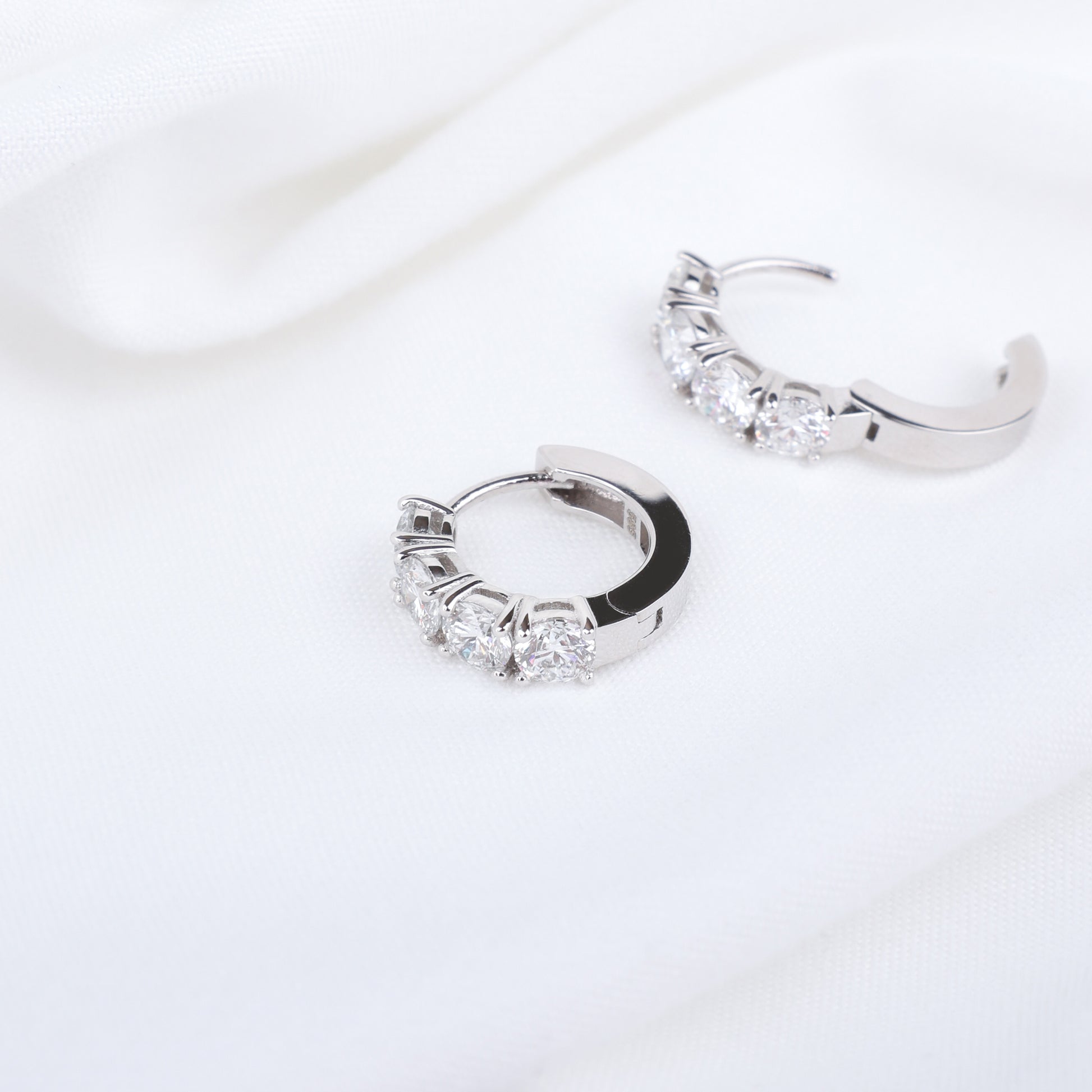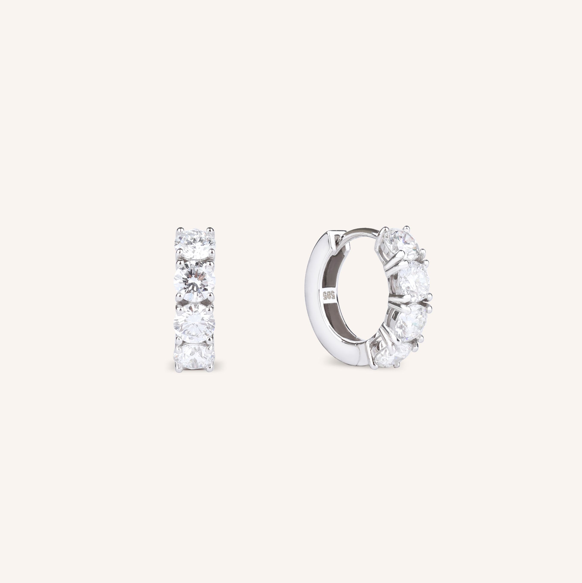 Designed with a sleek huggie silhouette, the hoops sit close to the ear for a modern yet timeless look. The secure clasp ensures comfortable wear, while the clean, minimalist lines highlight the brilliance of the diamonds without distraction. Perfect for both day-to-night wear, these hoops balance understated elegance with radiant sparkle.