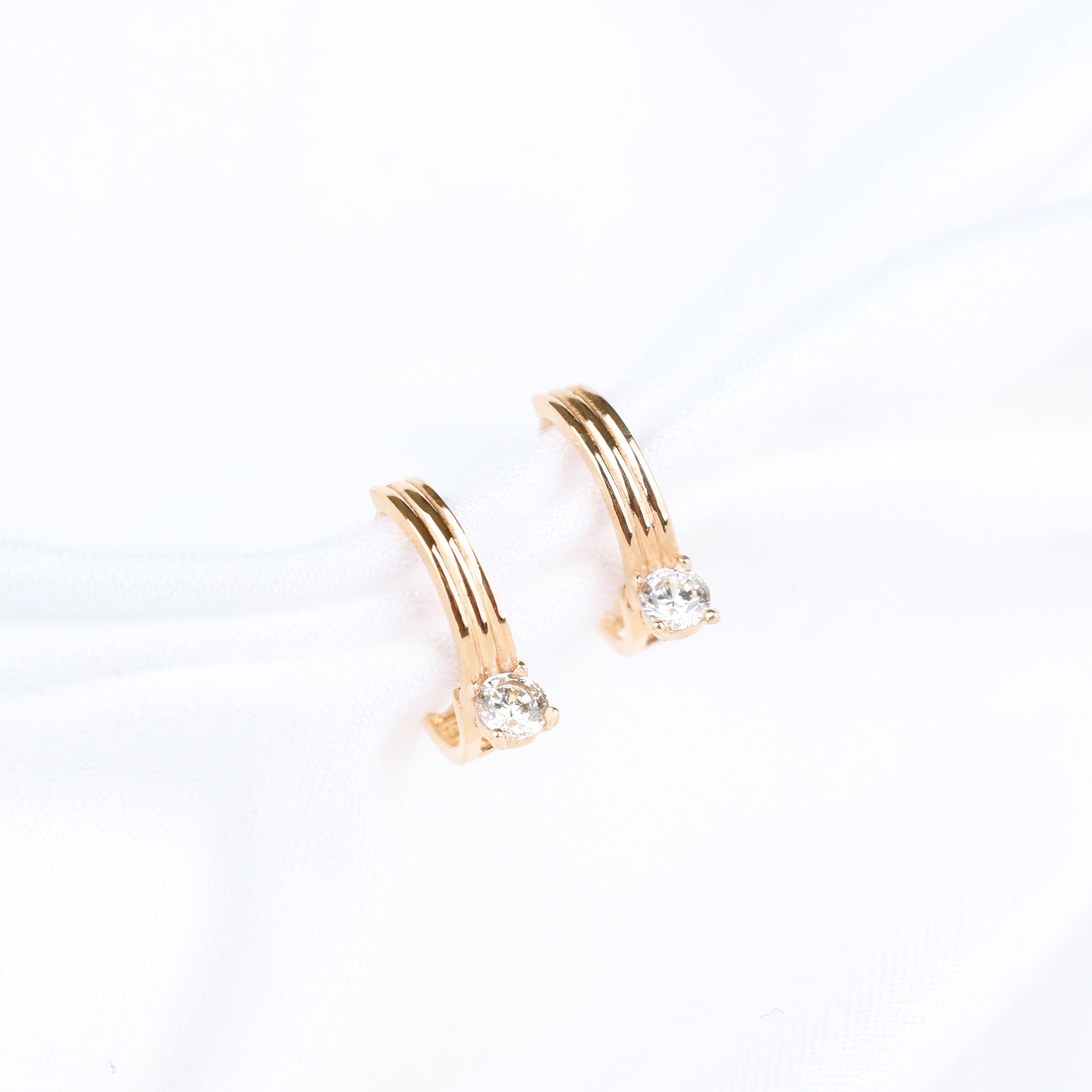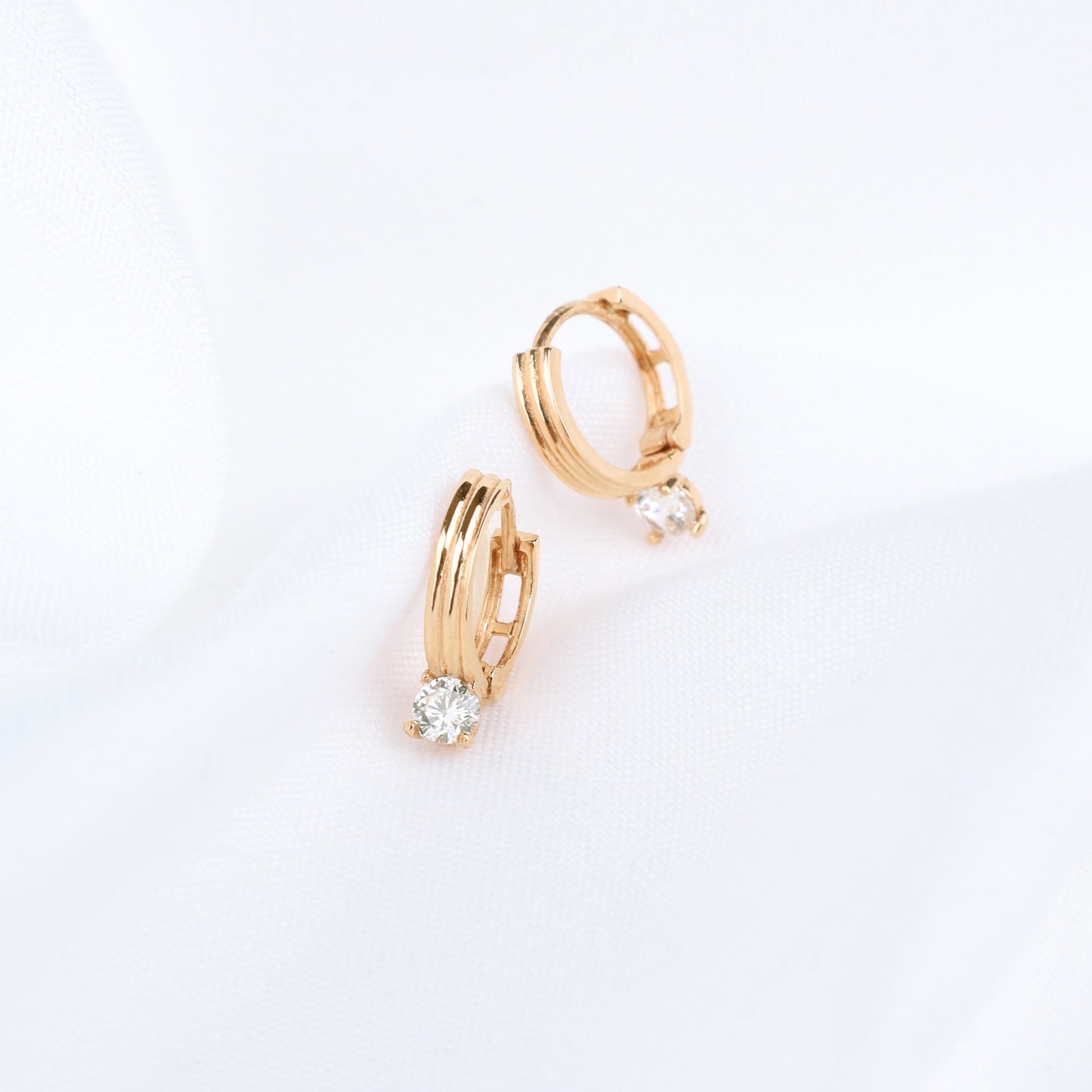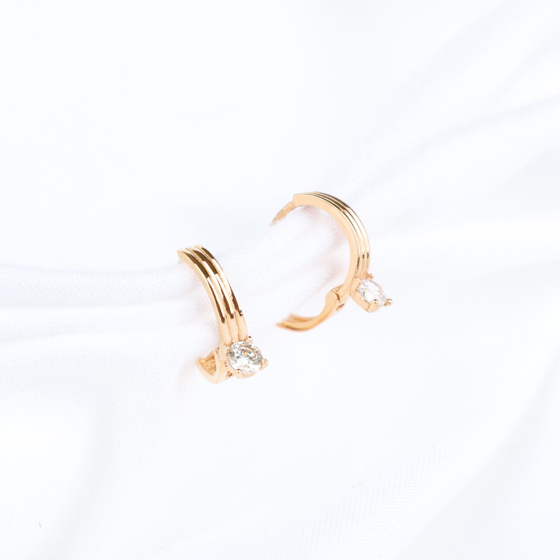 Each hoop is finished with a solitaire stone drop, delicately set to catch the light with every movement. The interplay between the structured ridged bands and the sparkling single gem creates a balance of strength and refined beauty.