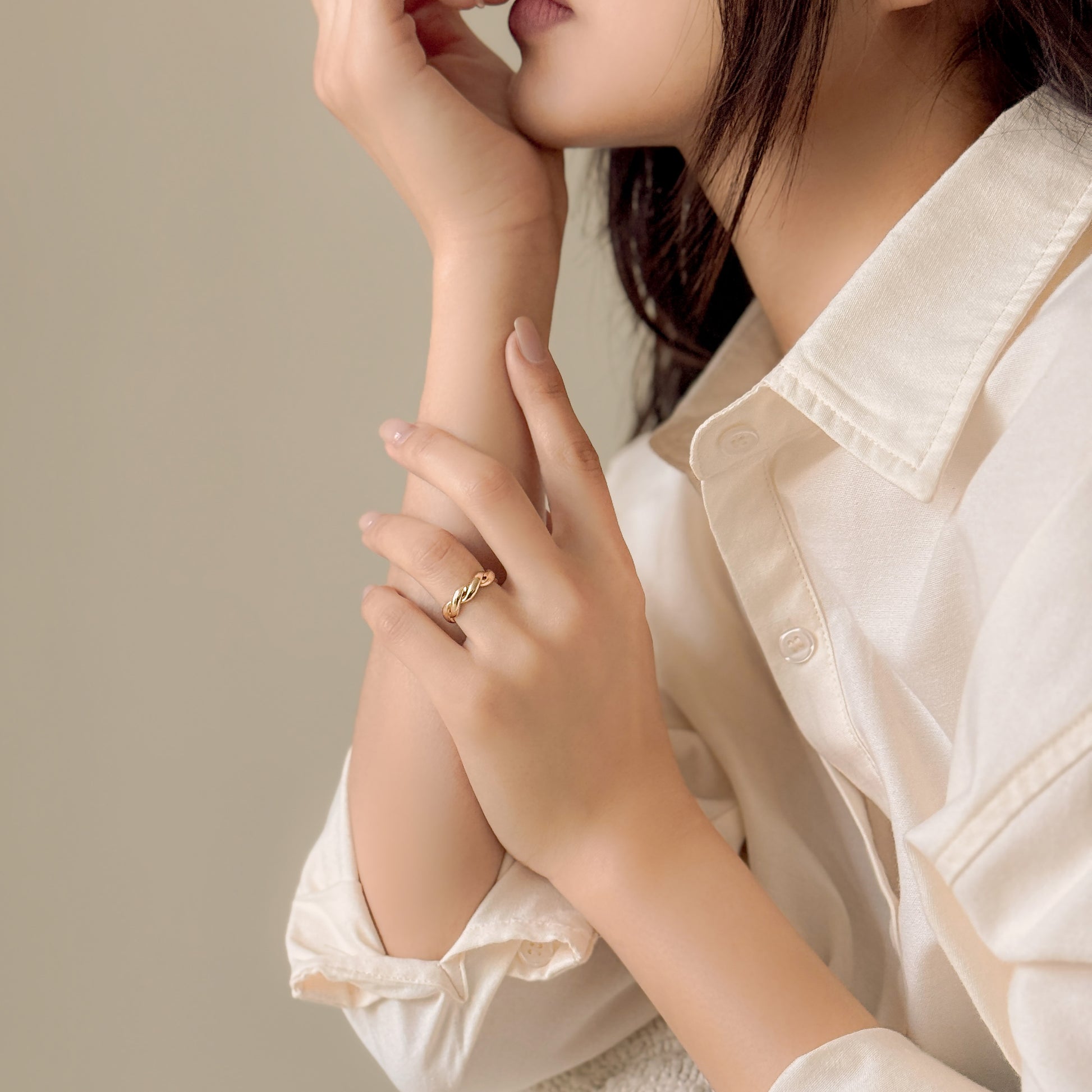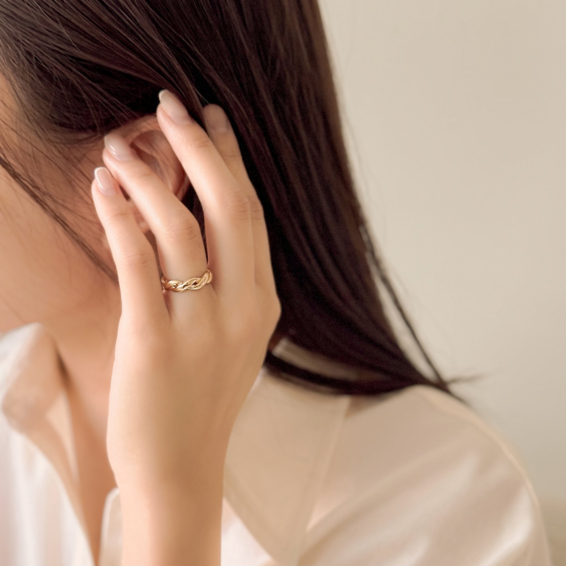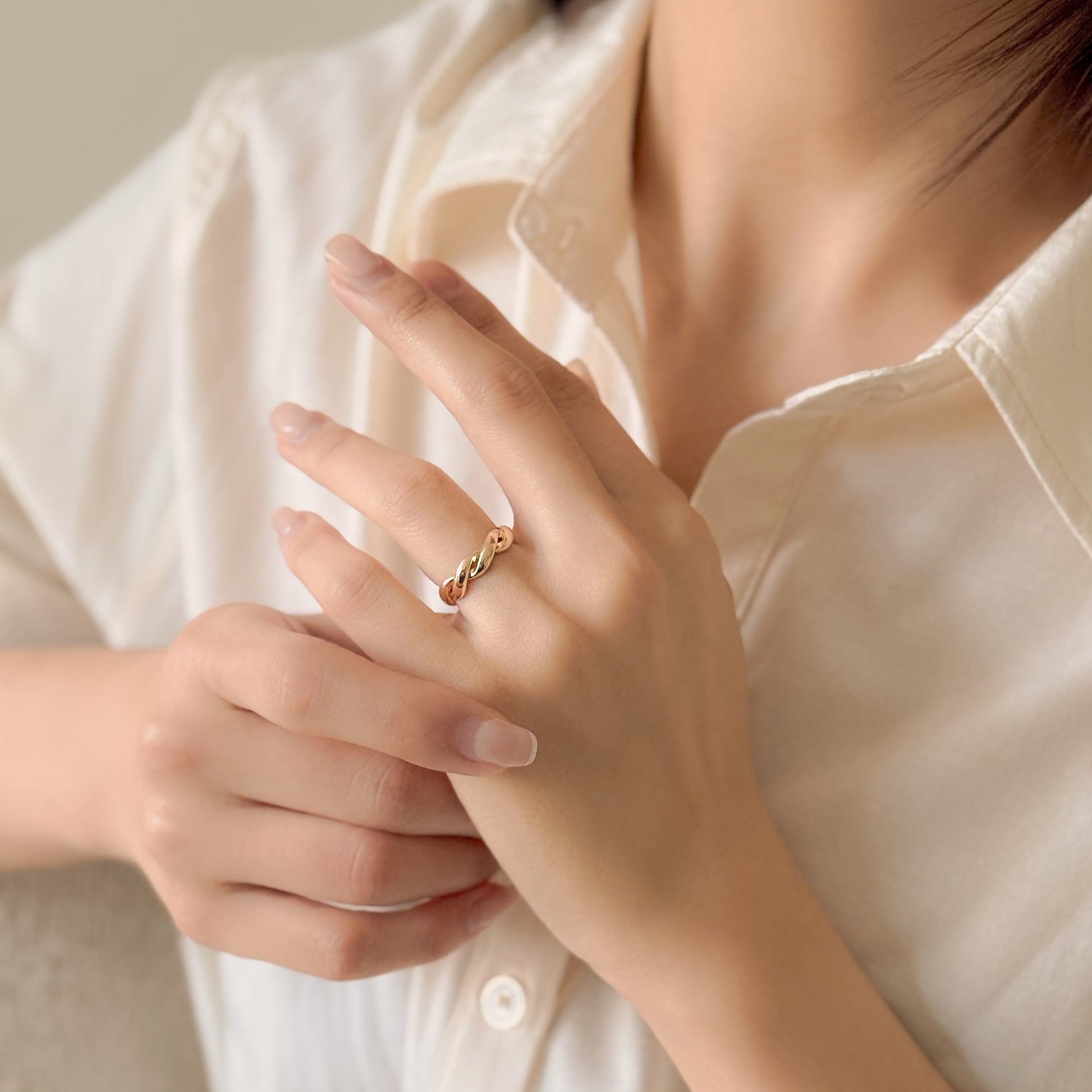 Featuring a softly twisted, donut-inspired silhouette reminiscent of a Korean twisted donut (kkwaebaegi), this ring creates a bold yet refined presence. Smooth curves and a polished finish add sophistication, making it effortless to wear from everyday styling to evening occasions.